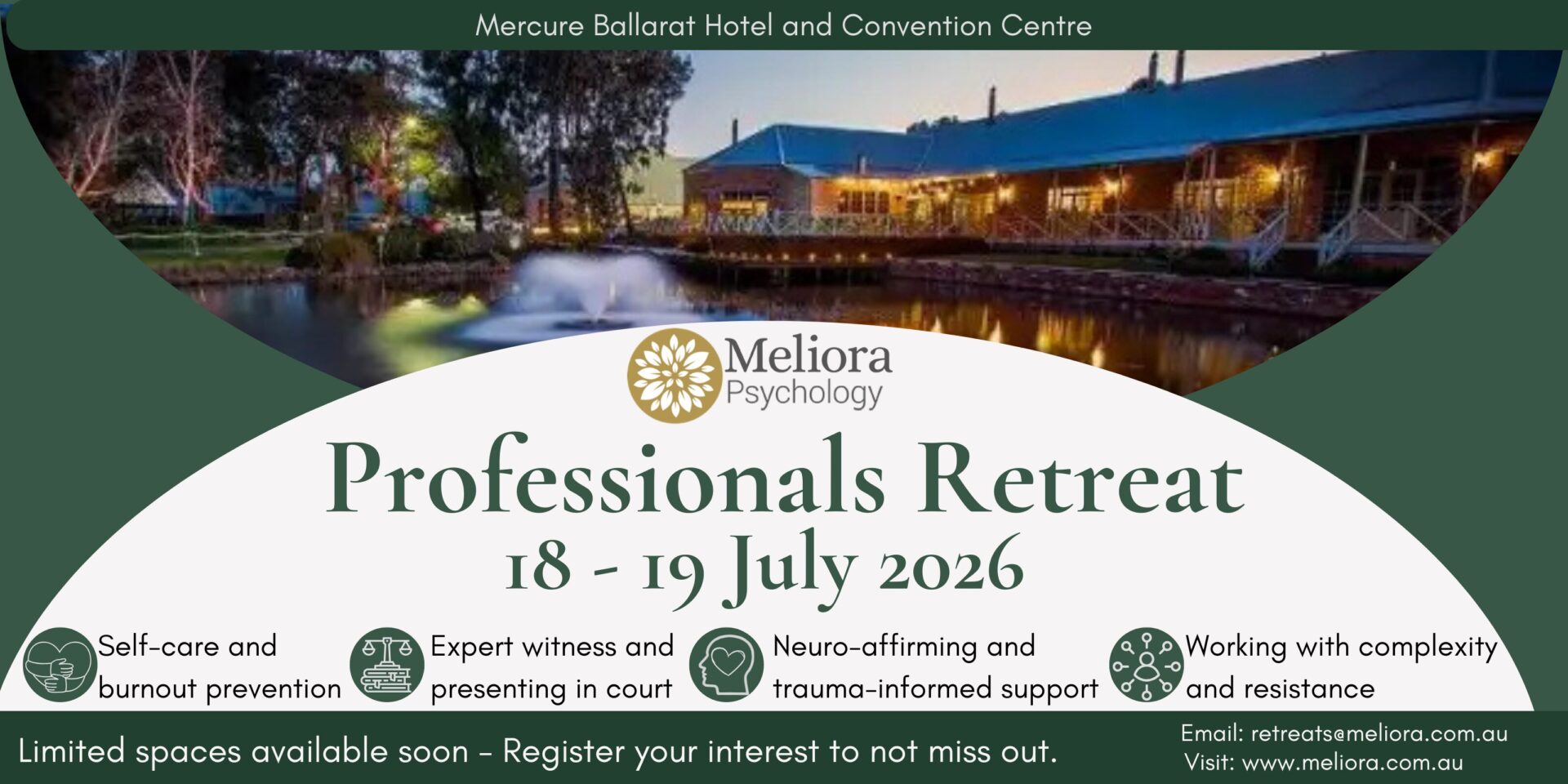 Welcome to Meliora Psychology At Meliora we believe that humanity’s greatest asset is connection. In healthy connection with others we can learn, grow, and feel safe. Our Services At Meliora Psychology we offer a number of trauma-informed, neuroaffirming services to individuals, groups, and organisations. These include: Individual counselling for adolescents and adultsTherapeutic Group ProgramsIndividual therapy for self- and plan-managed NDIS plansEmployee Assistance Program providerEye-Movement Desensitisation and Reprocessing (EMDR) Forensic AssessmentPsychological Assessment (including Autism and ADHD)Psychological Supervision (General and Forensic)Professional Support and Reflective PracticeTraining, Consultation, and Professional Development Retreats News Welcome to Melinda Meliora Psychology extends a warm welcome to Melinda, who currently offers telehealth availability. Read more or enquire below. Read More Here Enquire Now Please contact us for further information or to discuss your or your organisation’s needs. Contact Us